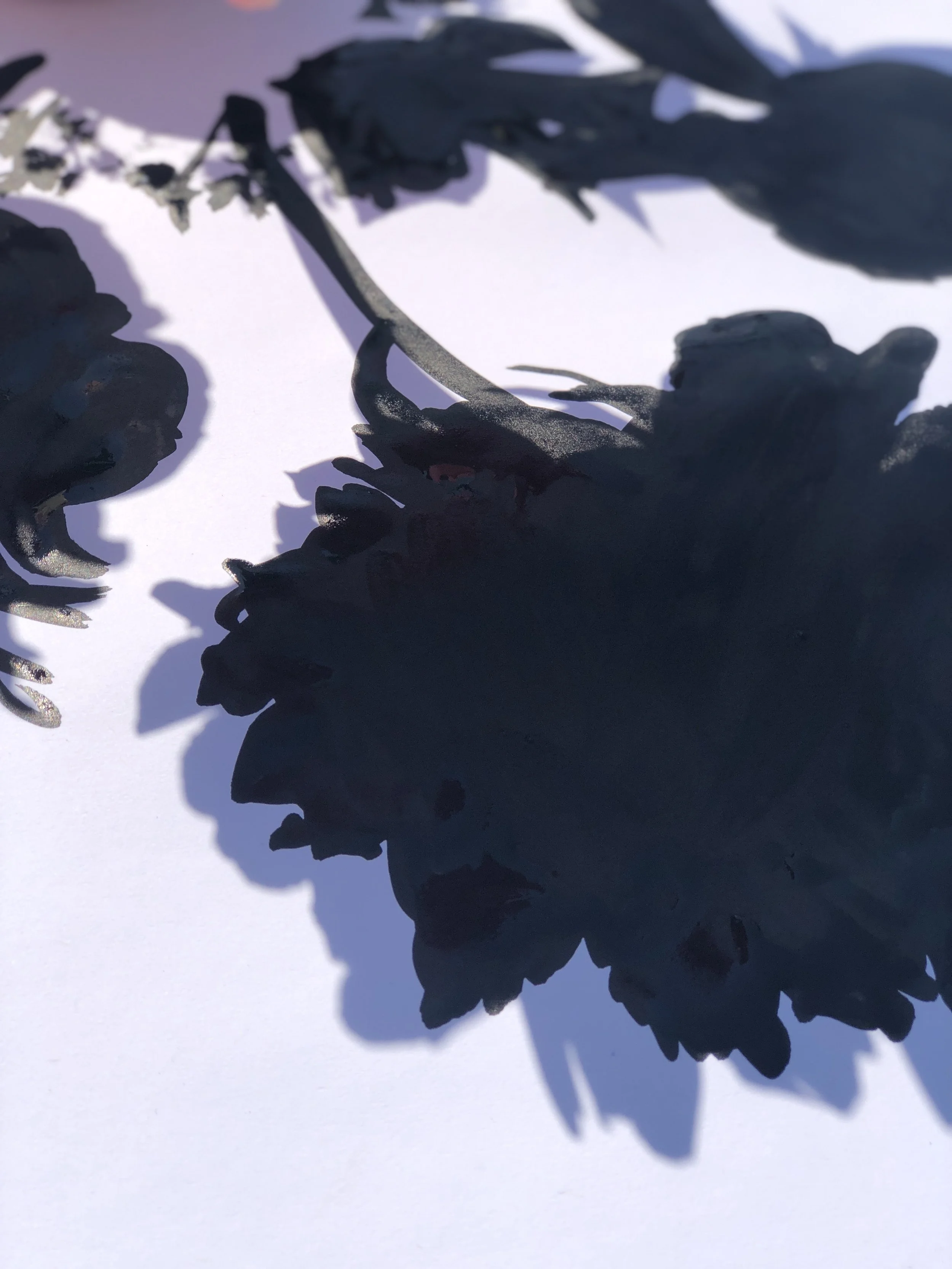 The red and blue maxi florals celebrate the blossoming peonies in all it’s glory, I chose to paint these in black to make a sumptuous result, and the colour palette to celebrate eLulu’s Chinese heritage.
